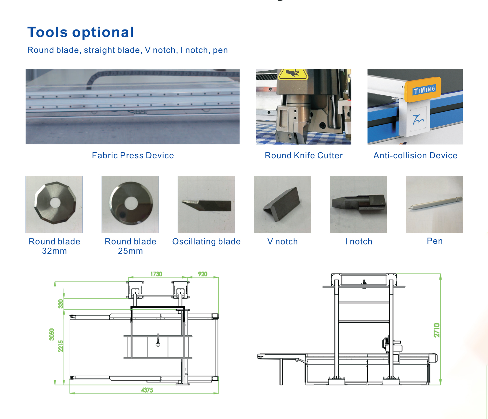 | Tool configuration | Tungsten steel straight knife, round knife, and other tools like V notch, I notch etc optional |
